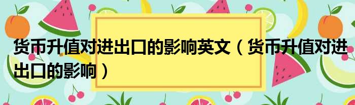 货币升值对进出口的影响英文(货币升值对进出口的影响)