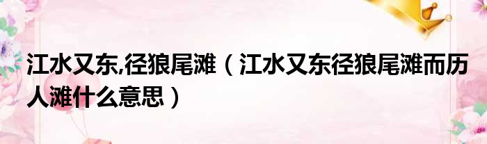 导读 大家好,今天小六子来为大家解答以下的问题,关于江水又东,径狼尾滩,江水又东径狼尾滩而历人滩什么意思这个很多人还不知道,现在让我们一起