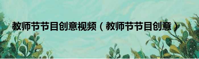 教师节节目创意视频(教师节节目创意)