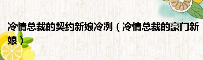 导读 大家好,今天小六子来为大家解答以下的问题,关于冷情总裁的契约新娘冷冽,冷情总裁的豪门新娘这个很多人还不知道,现在让我们一起来看看吧