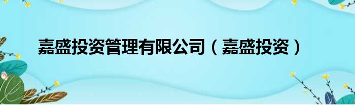 大家好,今天小六子来为大家解答以下的问题,关于嘉盛投资管理有限公司,嘉盛投资这个很多人还不知道,现在让我们一起来看看吧!