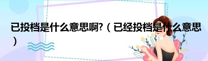 导读 大家好,今天小六子来为大家解答以下的问题,关于已投档是什么意思啊?,已经投档是什么意思这个很多人还不知道,现在让我们一起来看看吧!1