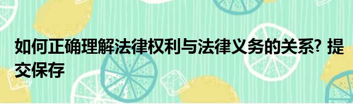 如何正确理解法律权利与法律义务的关系? 提交保存