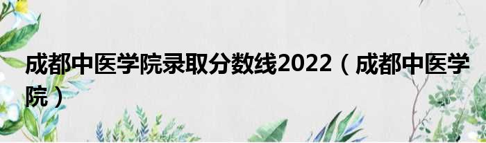 导读 大家好,今天小六子来为大家解答以下的问题,关于成都中医学院录取分数线2022,成都中医学院这个很多人还不知道,现在让我们一起来看看吧!1