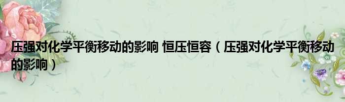 导读 大家好,今天小六子来为大家解答以下的问题,关于压强对化学平衡移动的影响 恒压恒容,压强对化学平衡移动的影响这个很多人还不知道,现在