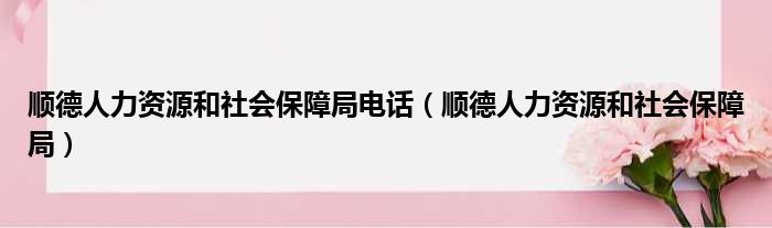 顺德人力资源和社会保障局电话(顺德人力资源和社会保障局)