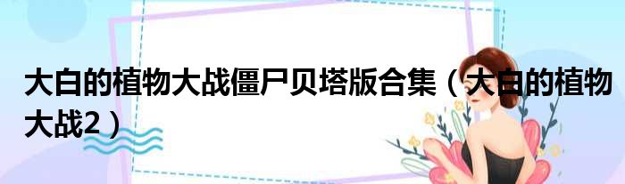 导读 大家好,今天小六子来为大家解答以下的问题,关于大白的植物大战僵尸贝塔版合集,大白的植物大战2这个很多人还不知道,现在让我们一起来看看