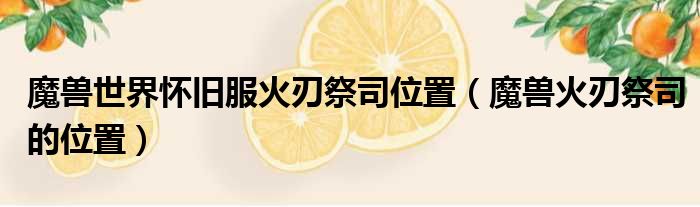 导读 大家好,今天小六子来为大家解答以下的问题,关于魔兽世界怀旧服火刃祭司位置,魔兽火刃祭司的位置这个很多人还不知道,现在让我们一起来看