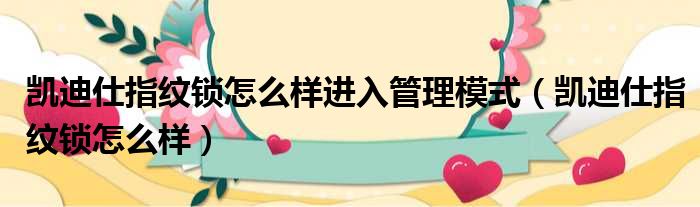 凯迪仕指纹锁怎么样进入管理模式(凯迪仕指纹锁怎么样)