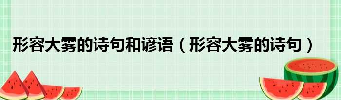 形容大雾的诗句和谚语(形容大雾的诗句)