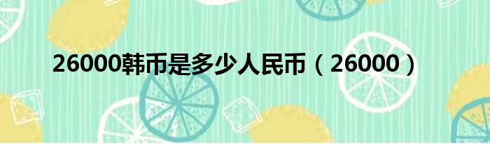大家好,今天小六子来为大家解答以下的问题,关于26000韩币是多少人民币,26000这个很多人还不知道,现在让我们一起来看看吧!