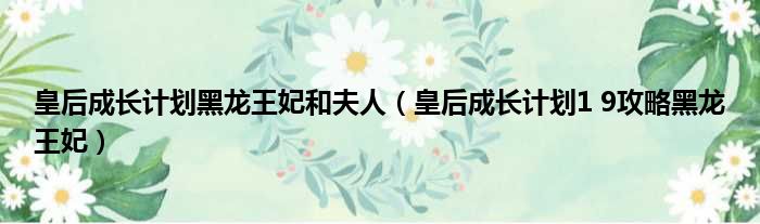 大家好,今天小六子来为大家解答以下的问题,关于皇后成长计划黑龙王妃和夫人,皇后成长计划1 9攻略黑龙王妃这个很多人还不知道,现在让我们一起来看看吧!