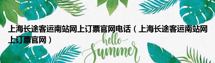 上海长途客运南站网上订票官网电话(上海长途客运南站网上订票官网)