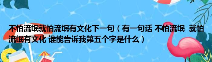 不怕流氓就怕流氓有文化下一句(有一句话 不怕流氓 就怕流氓有文化 谁能告诉我第五个字是什么)