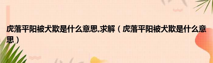 虎落平阳被犬欺是什么意思,求解(虎落平阳被犬欺是什么意思)