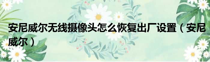 安尼威尔无线摄像头怎么恢复出厂设置(安尼威尔)
