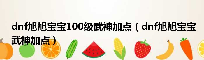 dnf旭旭宝宝100级武神加点(dnf旭旭宝宝武神加点)