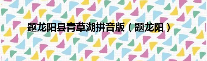 大家好,今天小六子来为大家解答以下的问题,关于题龙阳县青草湖拼音版,题龙阳这个很多人还不知道,现在让我们一起来看看吧!