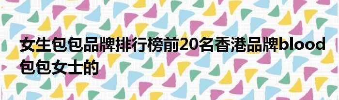大家好,今天小六子来为大家解答以下的问题,关于女生包包品牌排行榜前20名香港品牌blood包包女士的这个很多人还不知道,现在让我们一起来看看吧!