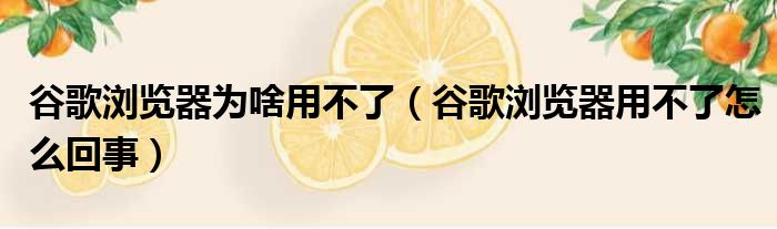 谷歌浏览器为啥用不了(谷歌浏览器用不了怎么回事)