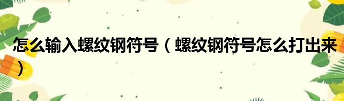导读 大家好,今天小六子来为大家解答以下的问题,关于怎么输入螺纹钢符号,螺纹钢符号怎么打出来这个很多人还不知道,现在让我们一起来看看吧!1