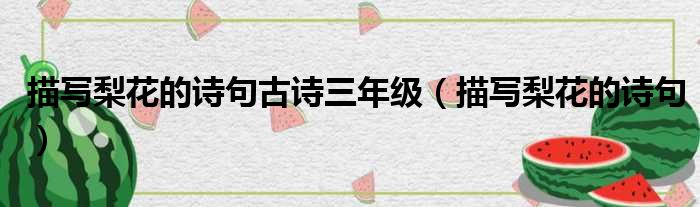 描写梨花的诗句古诗三年级(描写梨花的诗句)