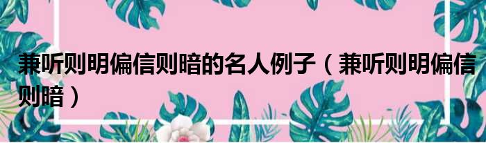 兼听则明偏信则暗的名人例子(兼听则明偏信则暗)