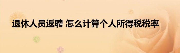 导读 大家好,今天小六子来为大家解答以下的问题,关于退休人员返聘 怎么计算个人所得税税率这个很多人还不知道,现在让我们一起来看看吧!1、聘