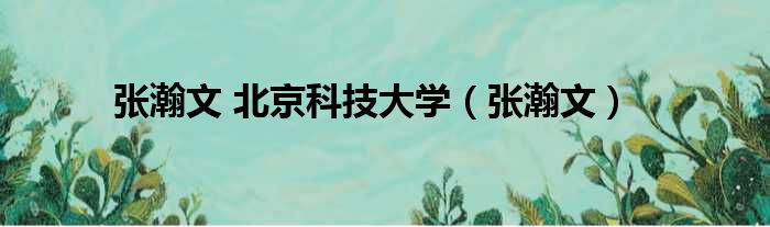 大家好,今天小六子来为大家解答以下的问题,关于张瀚文 北京科技大学,张瀚文这个很多人还不知道,现在让我们一起来看看吧!