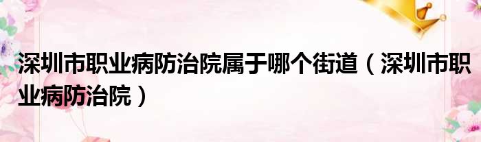 深圳市职业病防治院属于哪个街道(深圳市职业病防治院)
