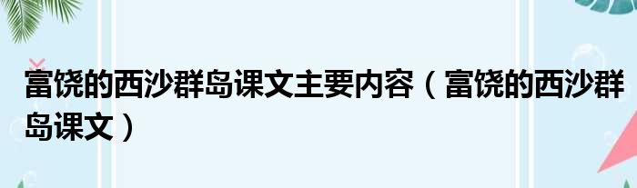 富饶的西沙群岛课文主要内容(富饶的西沙群岛课文)
