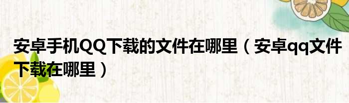 安卓手机QQ下载的文件在哪里(安卓qq文件下载在哪里)
