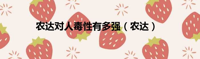 导读 大家好,今天小六子来为大家解答以下的问题,关于农达对人毒性有多强,农达这个很多人还不知道,现在让我们一起来看看吧!1、农达属于草甘膦