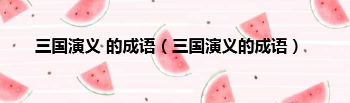 大家好,今天小六子来为大家解答以下的问题,关于三国演义 的成语,三国演义的成语这个很多人还不知道,现在让我们一起来看看吧!