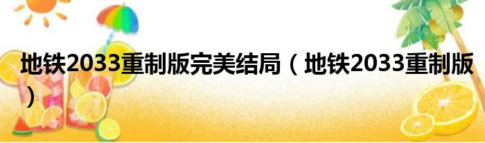 导读 大家好,今天小六子来为大家解答以下的问题,关于地铁2033重制版完美结局,地铁2033重制版这个很多人还不知道,现在让我们一起来看看吧!1、