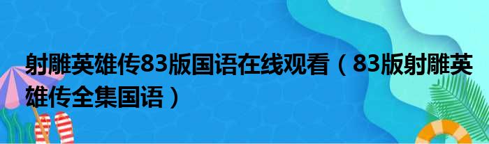 导读 大家好,今天小六子来为大家解答以下的问题,关于射雕英雄传83版国语在线观看,83版射雕英雄传全集国语这个很多人还不知道,现在让我们一起