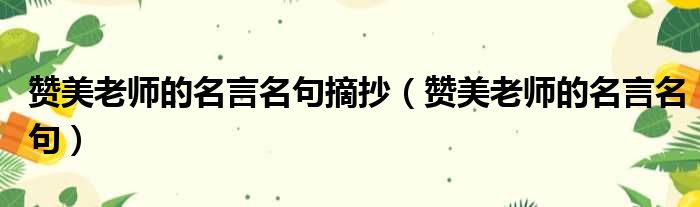 赞美老师的名言名句摘抄(赞美老师的名言名句)