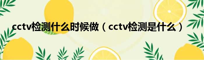 大家好,今天小六子来为大家解答以下的问题,关于cctv检测什么时候做,cctv检测是什么这个很多人还不知道,现在让我们一起来看看吧!