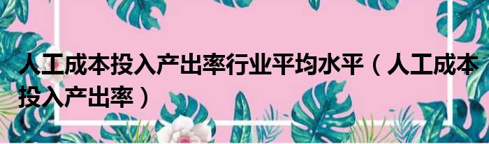 导读 大家好,今天小六子来为大家解答以下的问题,关于人工成本投入产出率行业平均水平,人工成本投入产出率这个很多人还不知道,现在让我们一起