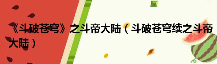 大家好,今天小六子来为大家解答以下的问题,关于《斗破苍穹》之斗帝大陆,斗破苍穹续之斗帝大陆这个很多人还不知道,现在让我们一起来看看吧!