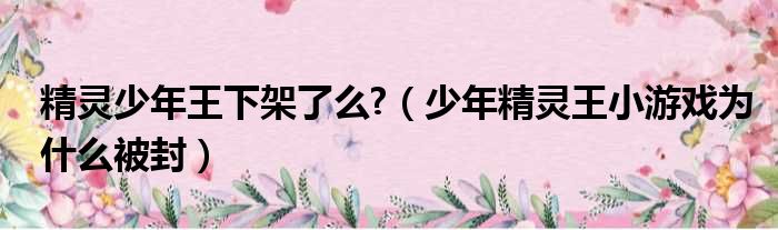 导读 大家好,今天小六子来为大家解答以下的问题,关于精灵少年王下架了么?,少年精灵王小游戏为什么被封这个很多人还不知道,现在让我们一起来看