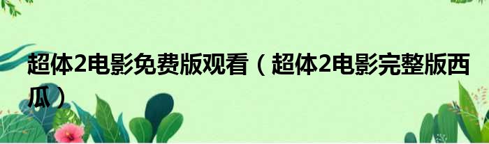 导读 大家好,今天小六子来为大家解答以下的问题,关于超体2电影免费版观看,超体2电影完整版西瓜这个很多人还不知道,现在让我们一起来看看吧!1