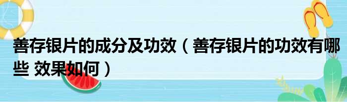 2、然而很多人对这类药品不太了解,那么善存银片的功效有哪些呢?效果如何?现在我们就为你解答这个问题。