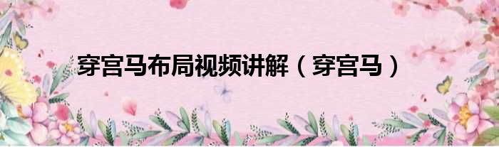 导读 大家好,今天小六子来为大家解答以下的问题,关于穿宫马布局视频讲解,穿宫马这个很多人还不知道,现在让我们一起来看看吧!1、穿宫马是一种