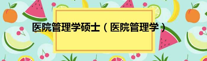 医院管理学硕士(医院管理学)