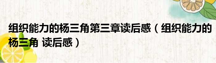 组织能力的杨三角第三章读后感(组织能力的杨三角 读后感)