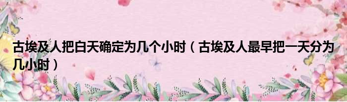 古埃及人把白天确定为几个小时(古埃及人最早把一天分为几小时)