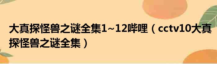 大真探怪兽之谜全集1~12哔哩(cctv10大真探怪兽之谜全集)