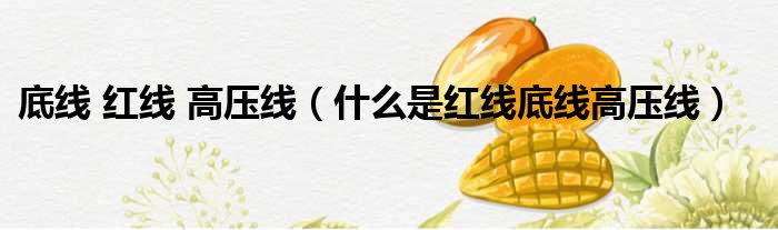 导读 大家好,今天小六子来为大家解答以下的问题,关于底线 红线 高压线,什么是红线底线高压线这个很多人还不知道,现在让我们一起来看看吧!1