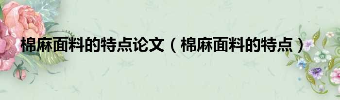 导读 大家好,今天小六子来为大家解答以下的问题,关于棉麻面料的特点论文,棉麻面料的特点这个很多人还不知道,现在让我们一起来看看吧!1、麻棉